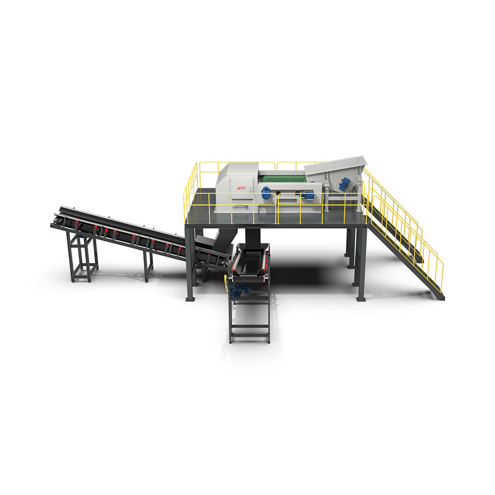 Based on the material, throughput and end usage; WALI offered its WLP twin shaft, slow speed, high torque waste shredder. This particular shredder can be deployed as either a primary or secondary shredder due to its highly robust design, high throughput and superior resistance to difficult to shred material. The twin shaft design provides exceptional intake behaviour, reduces traditional wrapping of material such as wires, plastics and long fibres and lends itself to less wear and longer life expectancy. This combined with impressive design features such as tramp metal cycles and intelligent load sensing insures against asset damage and makes the WALI the ideal solution for the processing of end.