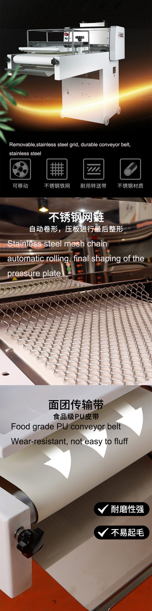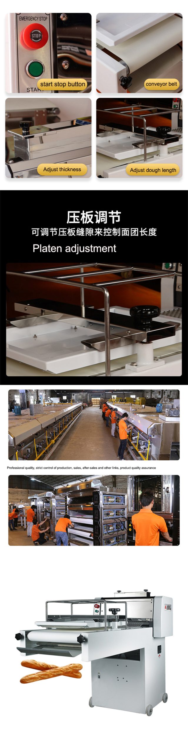 • The length of the dough can be adjusted, the exhaust is good, the dough is fully stretched, the finished product has good moisture retention and good organization.