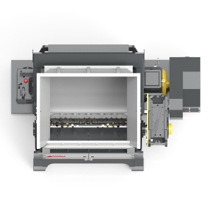 | + PLC control system is equipped with Siemens LCD screen; real time monitoring, abnormal alarm,remote diagnosis, data analysis, intelligent operation and maintenance. | + Curved access door is driven by hydraulic device, quick and convenient to open, saving time for maintenance. |