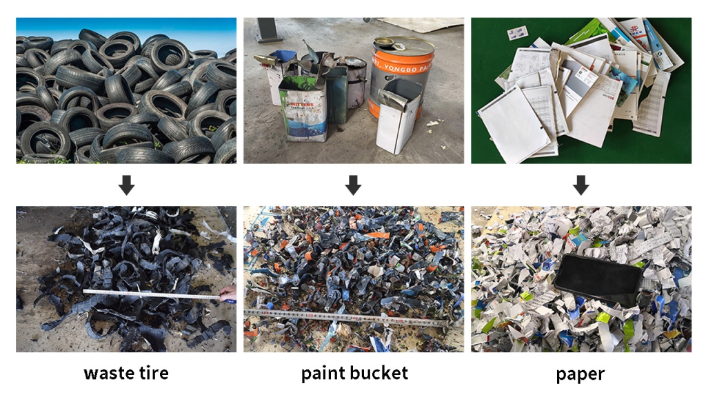 Composite materials : Fiberglass products, automobile windshield, sealing tape, etc; Safe destruction product : Imitation products(fake products), substandard products, expired items, etc.