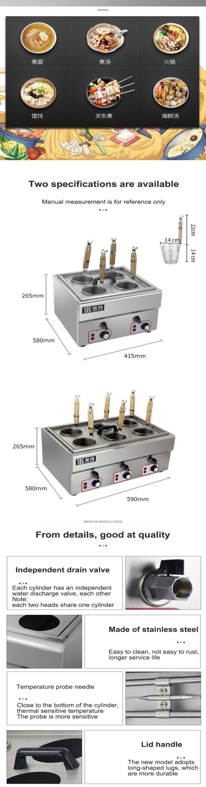 • Accurate temperature control,30~110C wide area temperature control, independent switch adjustment, easy to operate, meet all kinds of food temperature.